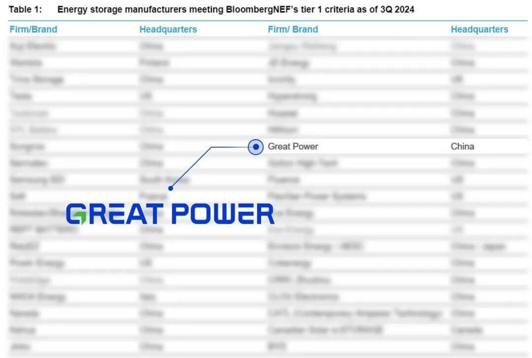 Fabricantes de Sistemas de Almacenamiento de Energía listados es BlombergNEF´s tier1 criterios de 3Q 2024